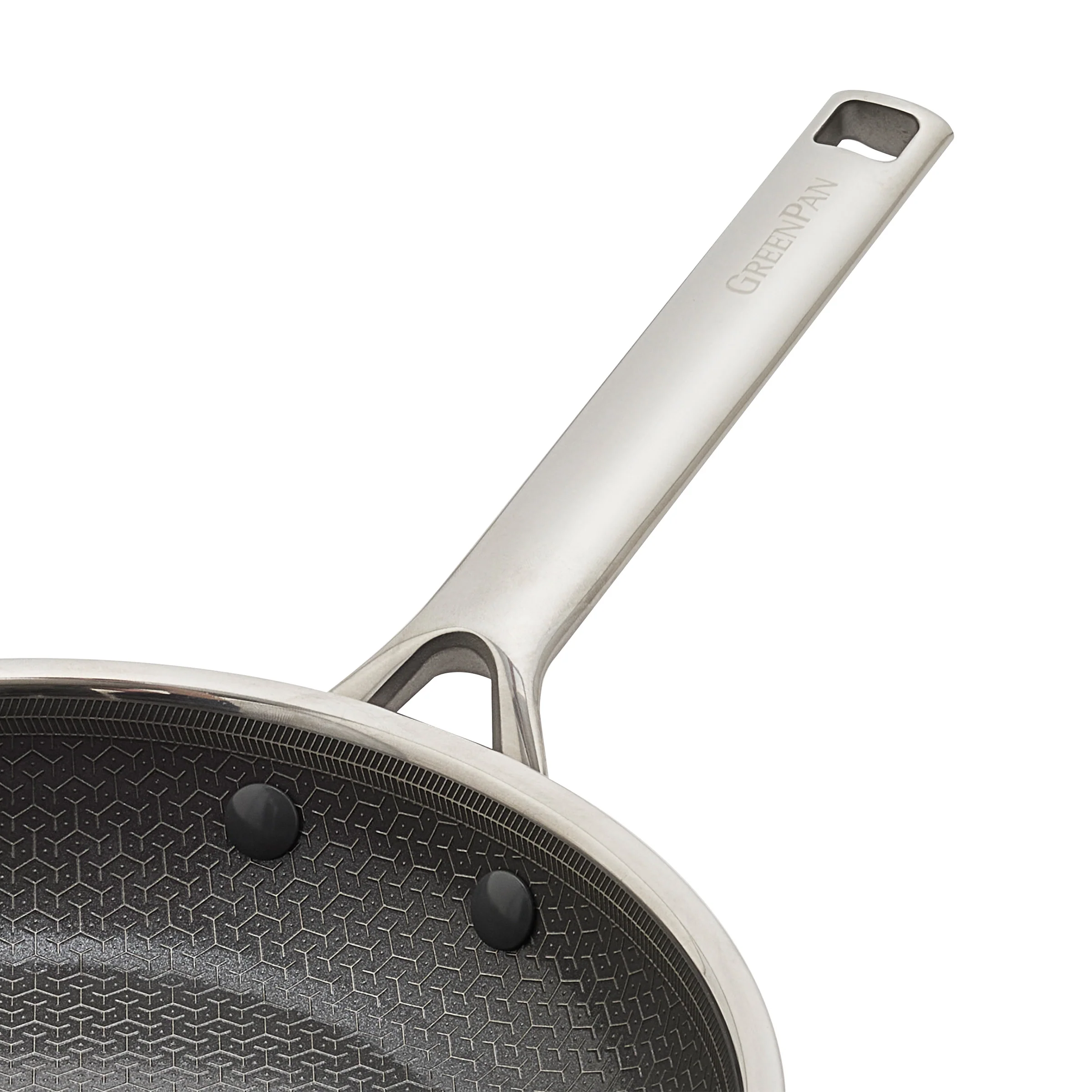 Deze ultrasterke collectie combineert de kracht van 3-laags roestvrij staal met het comfort van non-stick. Ontdek Thermolon⢠9G, GreenPanās meest geavanceerde PFAS-VRIJE keramische antiaanbaklaag, versterkt met diamant en afgewerkt met een geĆ«etst roestvrij stalen patroon met extra boostlaag, voor een pannenreeks die 5x meer bestand is tegen krassen.