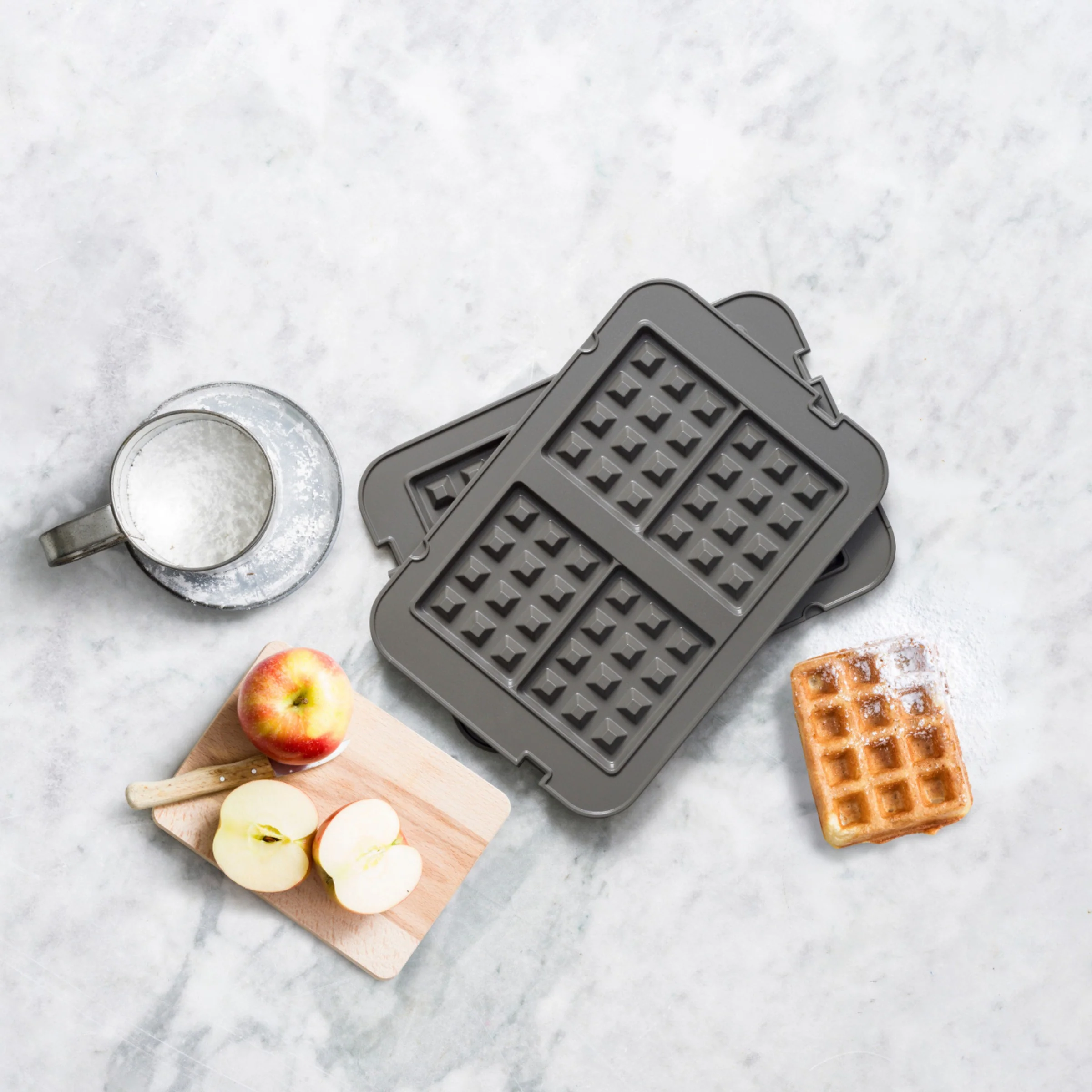 Deze wafelplaten passen op de GreenPan Bistro contactgrill. Ze hebben een PFAS-VRIJE keramische antiaanbaklaag, waardoor je wafels niet blijven plakken. De platen zijn uitneembaar en vaatwasserbestendig.