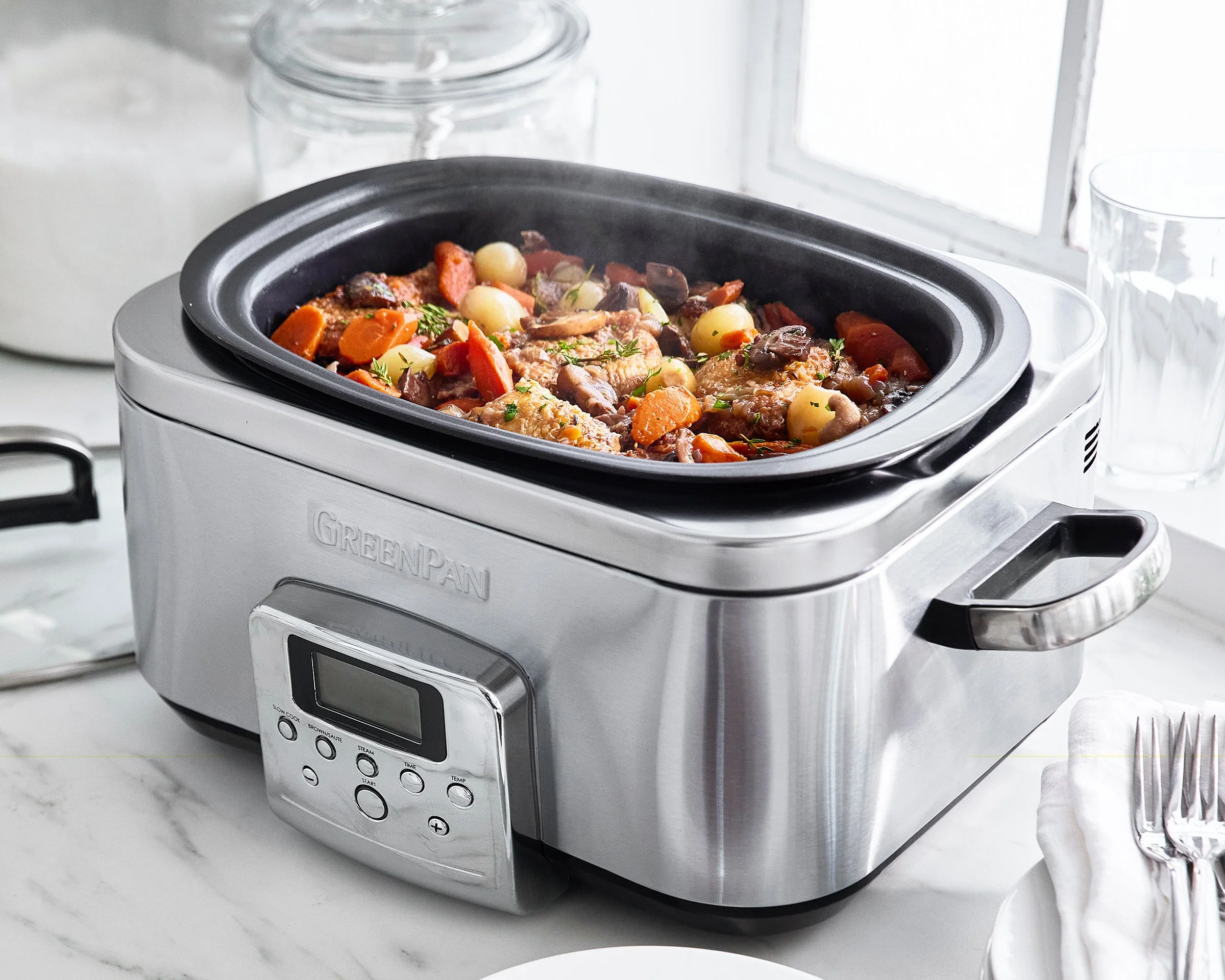 De slowcooker is jouw geheim voor gerechten boordevol smaak! Bak je vlees of groenten eerst aan, verlaag daarna de temperatuur en laat je gerecht urenlang sudderen. De slowcooker zorgt voor de juiste temperatuur en kooktijd, terwijl jij geniet van extra vrije tijd en met je gasten bezig kan zijn.